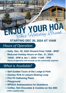 The Rockland Park Homeowners Association Team is absolutely thrilled to welcome you to explore your stunning new Lodge and Park this holiday season! Starting December