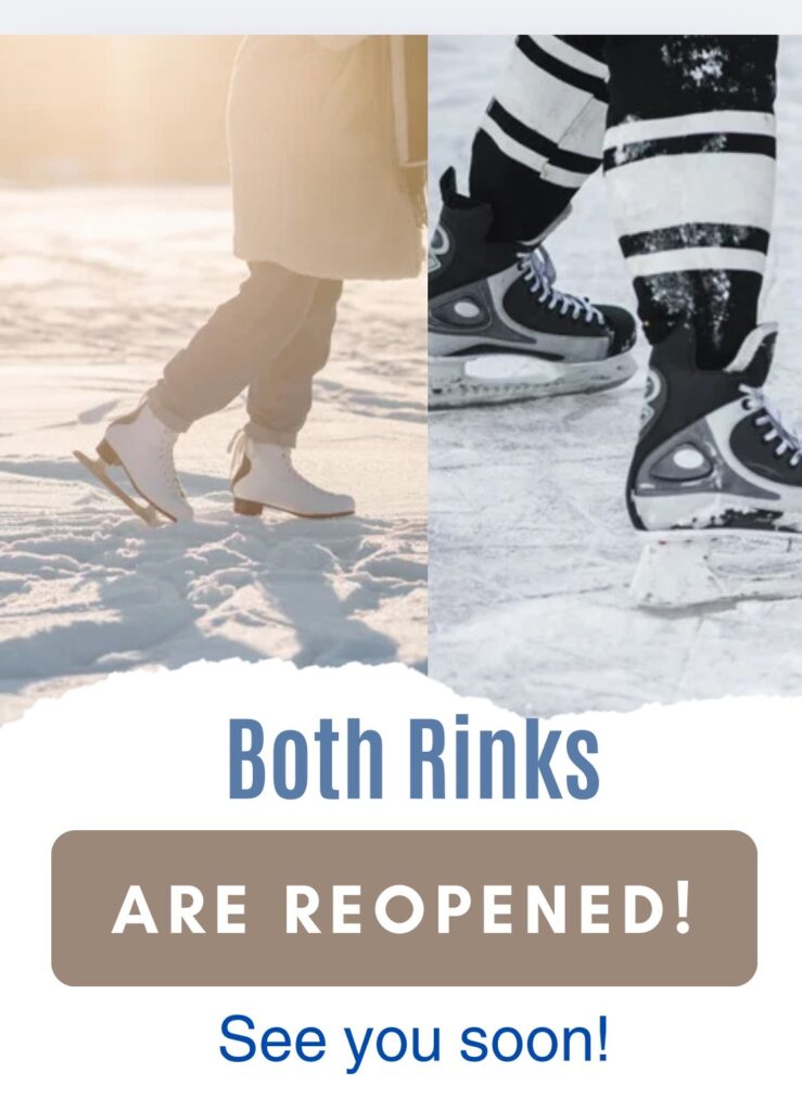 Great news Rockland Park! As of 12pm on Friday, January 31, 2025 both rinks are open! Grab your skates and head over to the Lodge to enjoy amazing ice! Hope to see you soon!